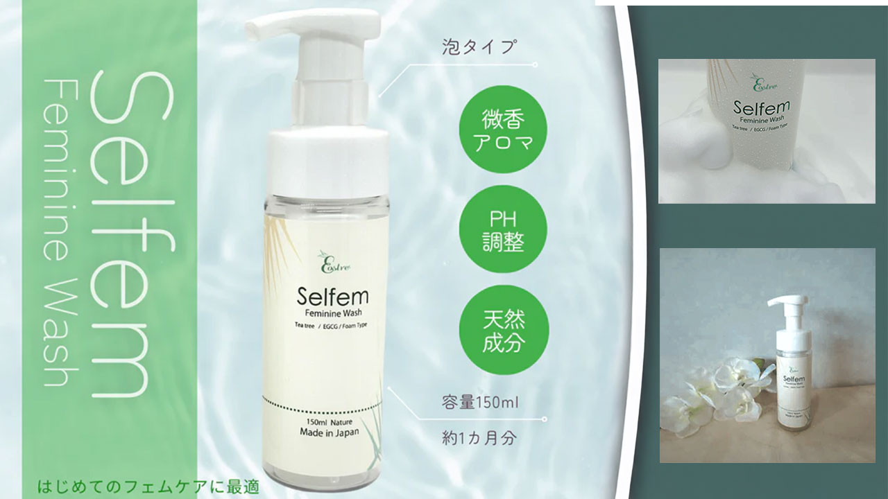 selfem Feminine Washは、からだ本来の力を取り戻すために・自然な膣のPH値・やさしく洗うための泡タイプ・身体に優しい天然成分にこだわって配合したデリケートゾーンに優しい専用ソープです。